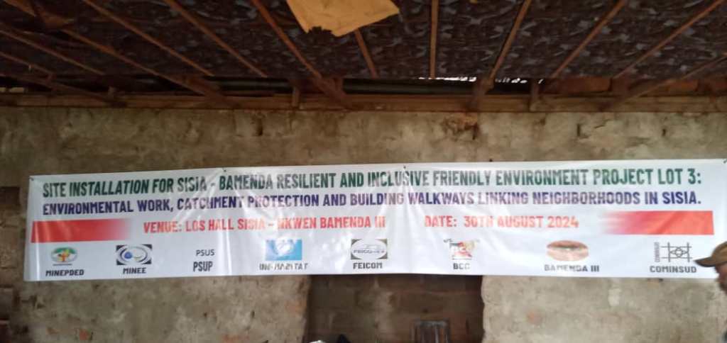 Community Initiative for Sustainable Development (COMINSUD) was on the 30th August installed as the contractor to handle Lot 3 of the “Bamenda resilient and inclusive friendly environment project; environment work catchment protection and building walkways linking nieghbooroods in Sisia Quarter” This 3rd phase of the Sisia project aims to safe guard five water catchment points in the Sisia 1, 2, 3 and 4 nieghbourhoods alongside other tasks.
